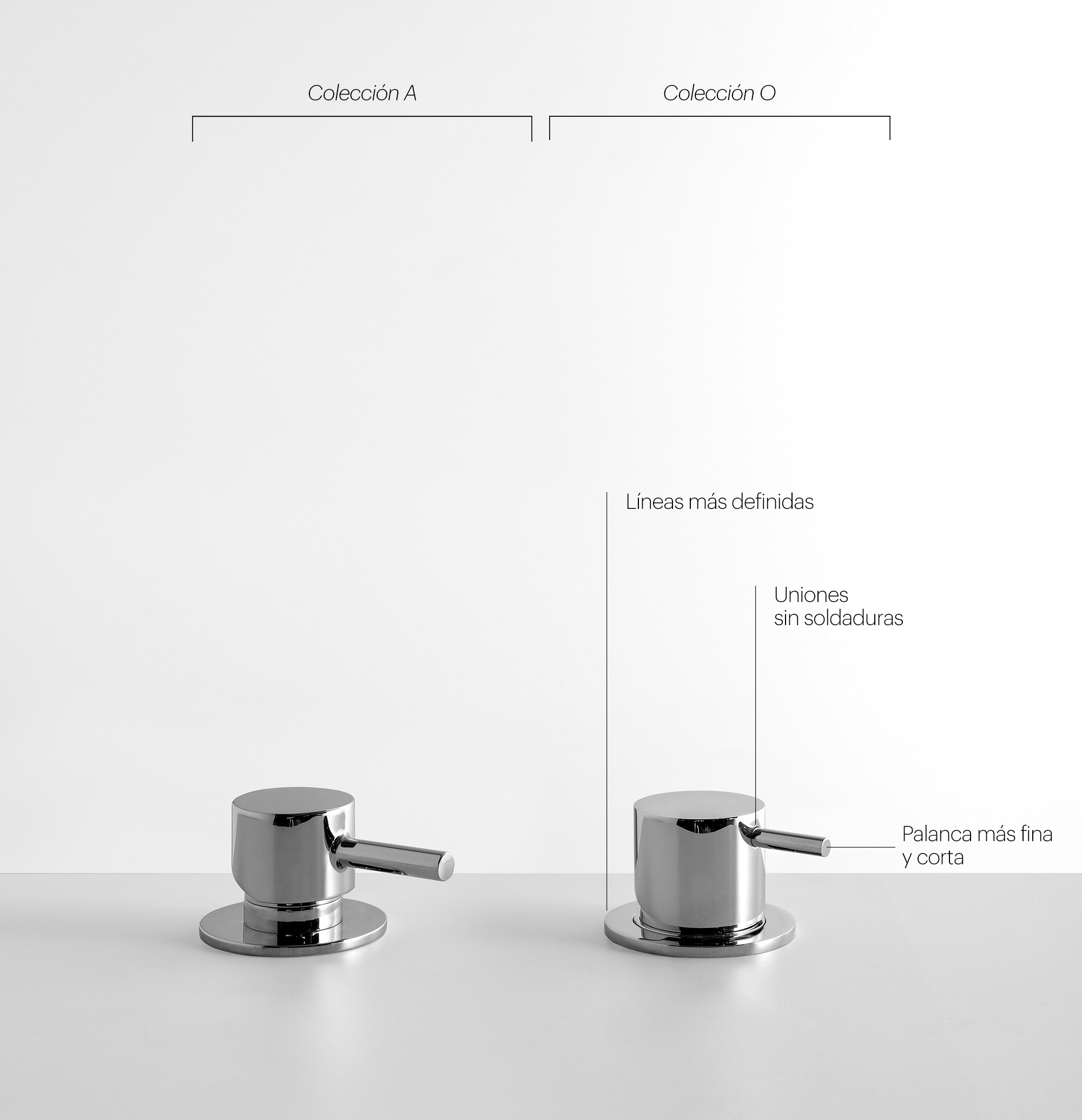 Ampliamos nuestro catálogo de grifería con la Colección O. Una evolución de la Colección A en la que hemos rediseñado algunos de nuestros modelos más icónicos. Para ello, hemos estilizado sus formas, ampliado sus acabados y mejorado su funcionalidad.