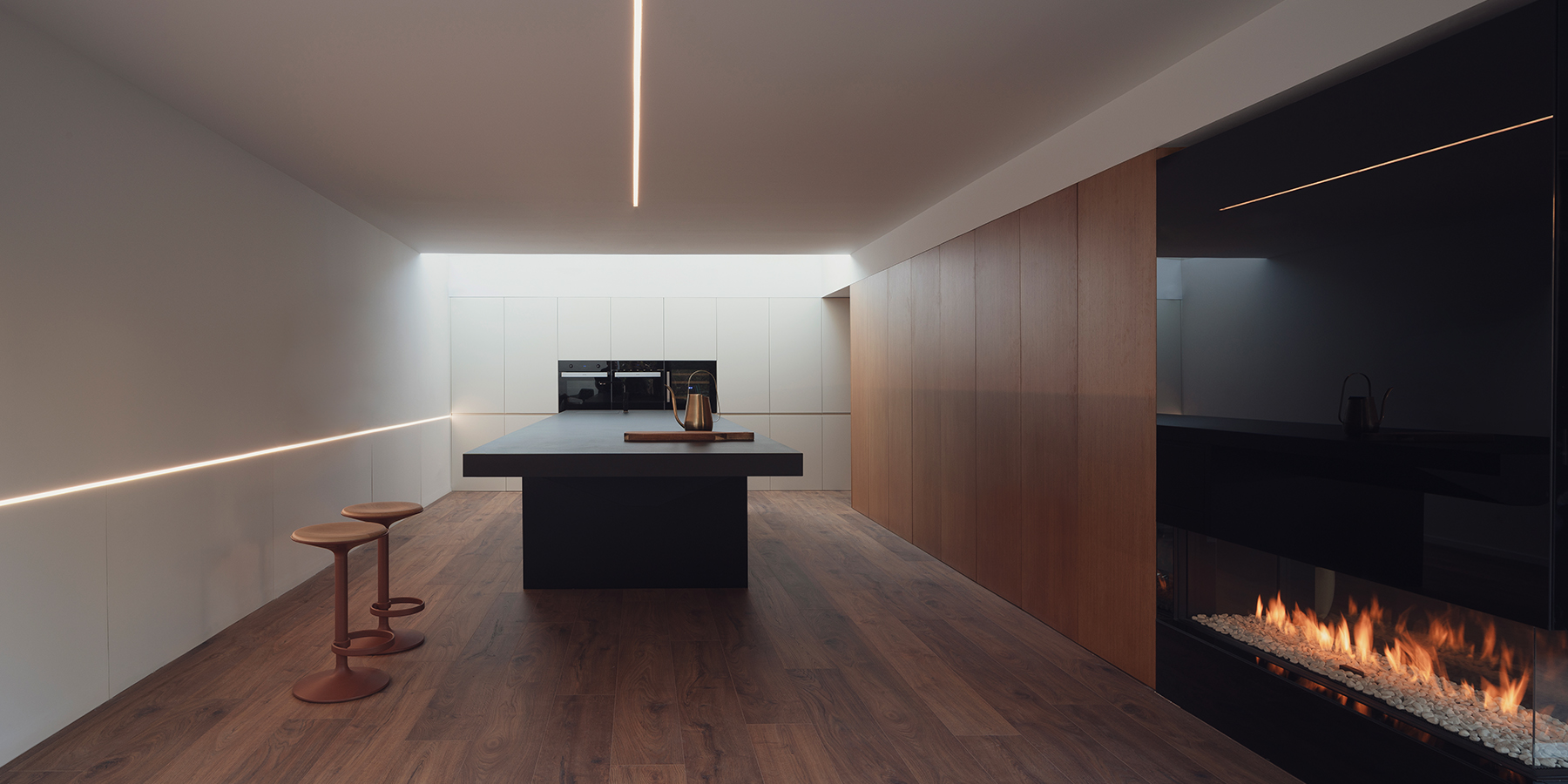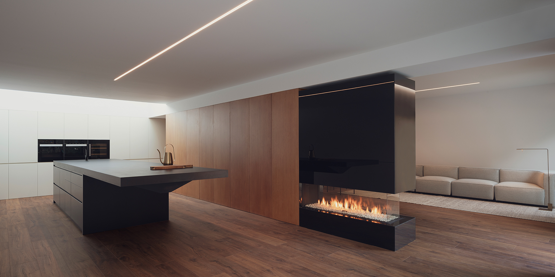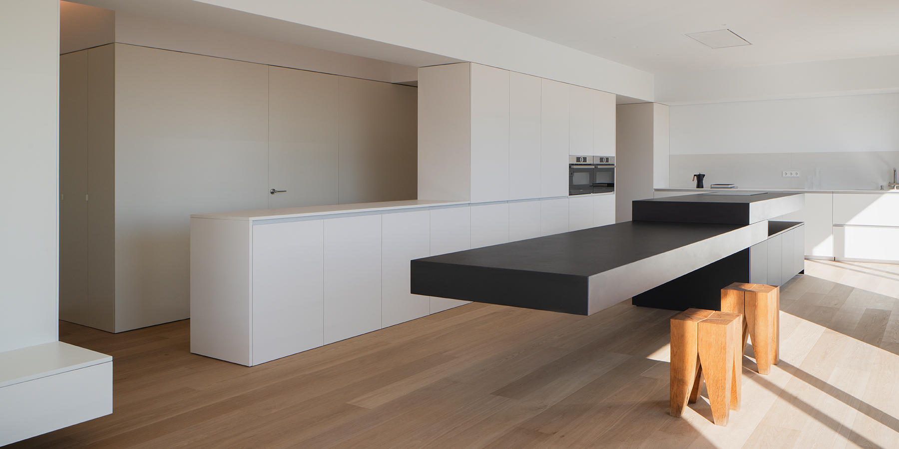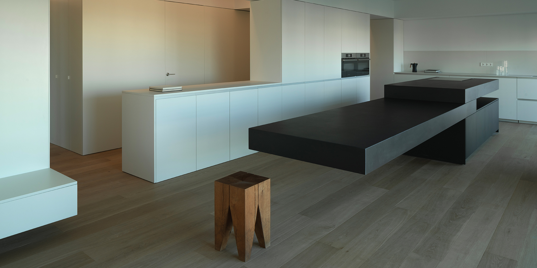 Crean espacios a través de formas elementales. Retirando los detalles de sus superficies, la luz y la materia encuentran en ellos su máxima expresión.