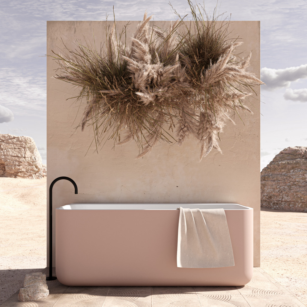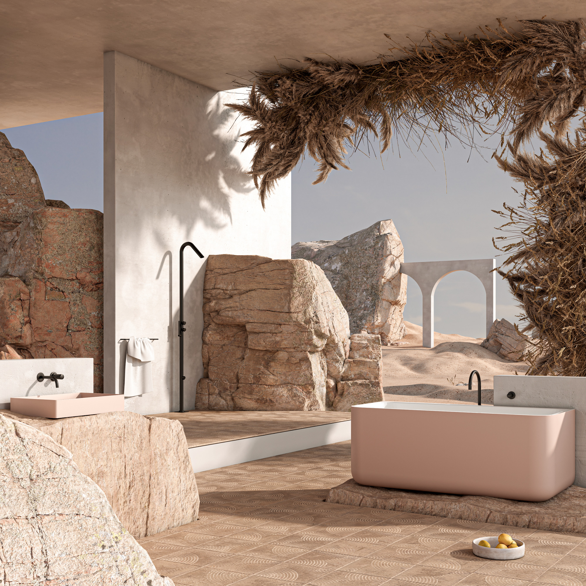 También, para ICÓNICO quise crear un entorno en el que la naturaleza fuera el decorado predominante. Decidí utilizar colores desaturados y un lenguaje arquitectónico minimalista para crear un entorno que distrajera lo menos posible, de modo que los productos de ICÓNICO, aunque se mimetizaran bien con el entorno, siguieran siendo los protagonistas.