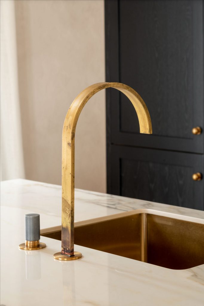 «La grifería se ha propuesto dorada para la cocina y baño principal, con distintos acabados crude y brillo.