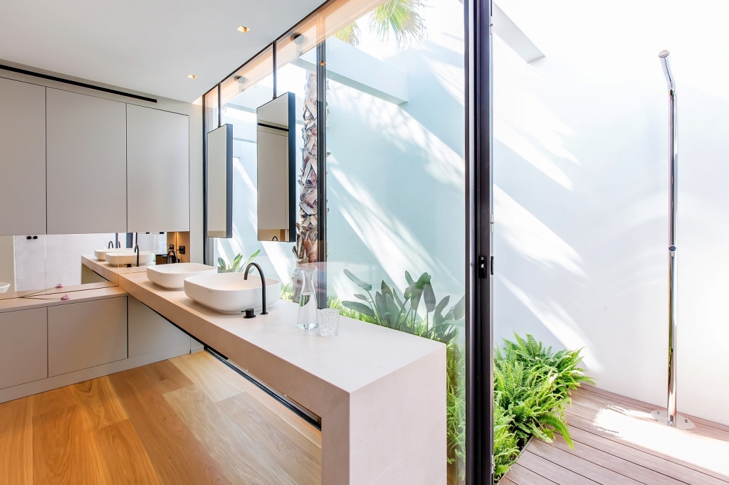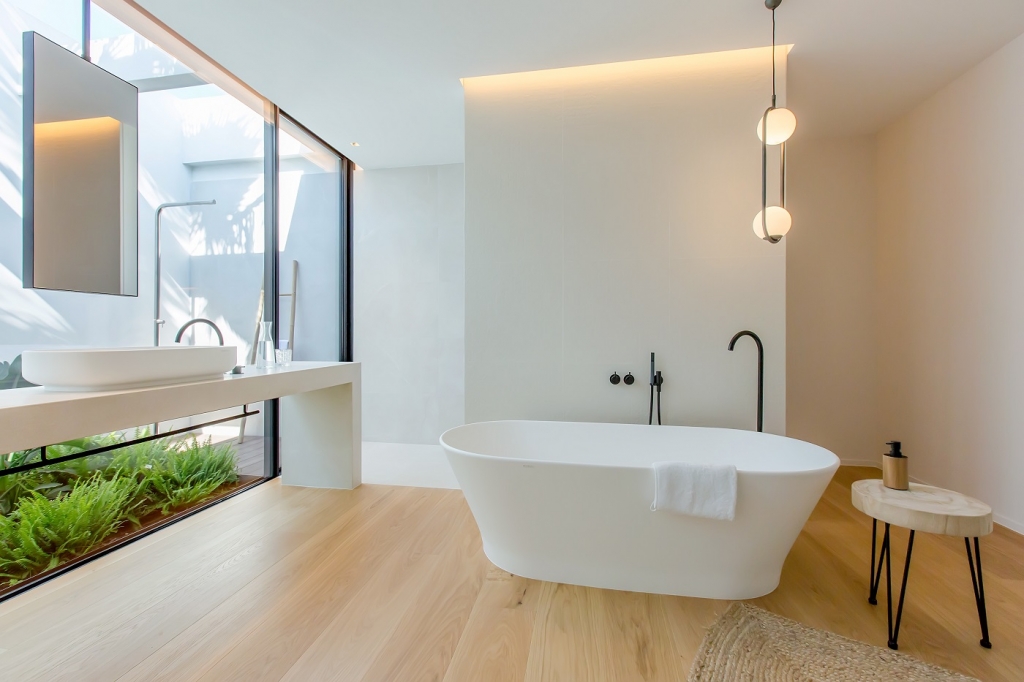 TRASLUZ es una espaciosa y moderna casa familiar (660 m² de superficie construida incluyendo terrazas cubiertas, 2.630 m² de parcela), adecuada para vivir todo el año Su diseño se centró en habitaciones grandes, terrazas grandes y jardines generosos para acomodar a muchas personas. Un objetivo clave del diseño era tener todo en un solo nivel, algo que rara vez se encuentra en Mallorca y solo es posible en una parcela grande o doble (en el caso de TRASLUZ) debido a las estrictas normas de construcción.
